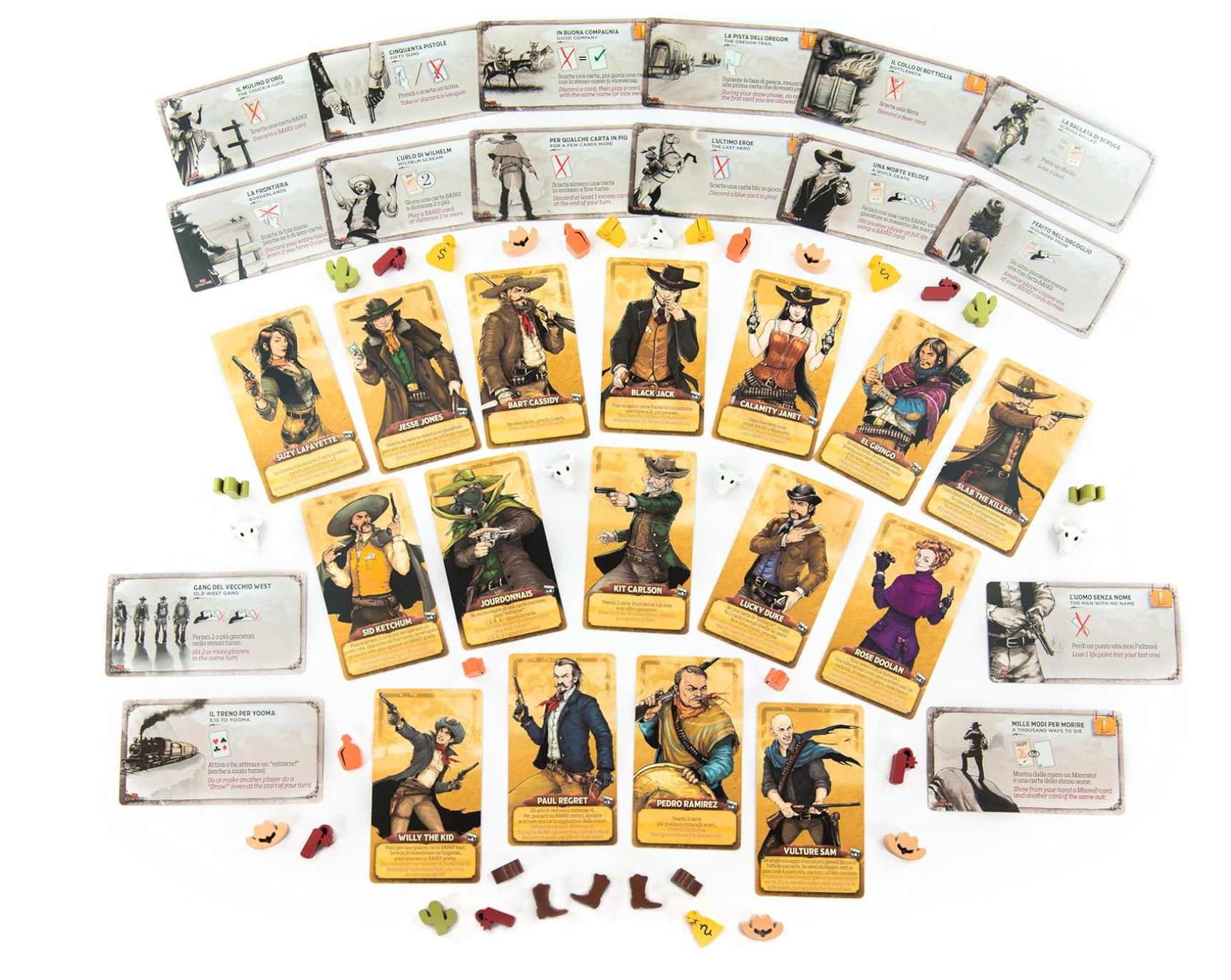 BANG! Legends is an expansion that lets you play as a “Legendary” version of the classic BANG! characters and discover new lethal abilities. But be careful: Only by completing amazing feats (or by boasting about them!) can you enter into Legend!
