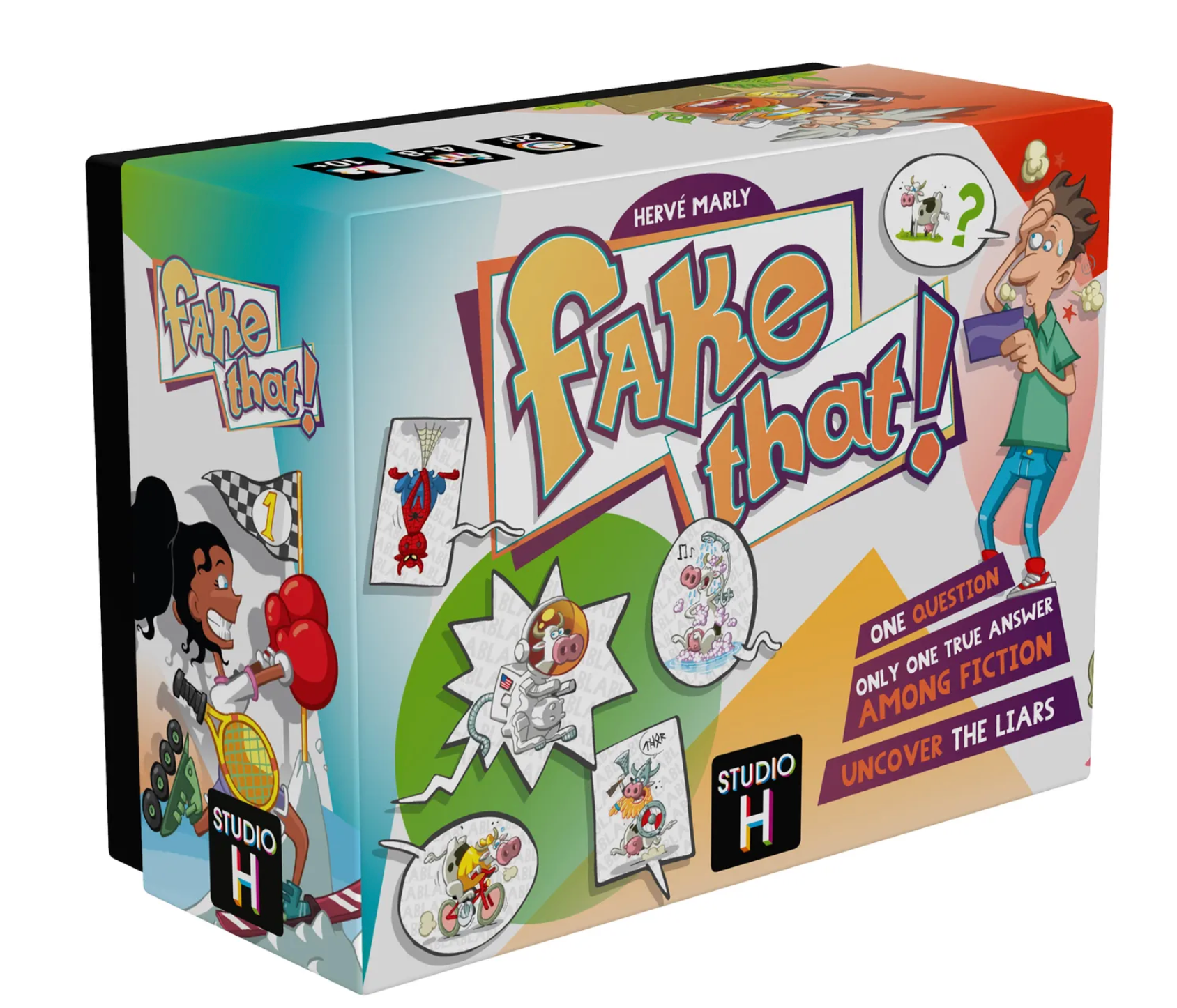 In each round of Fake That!, the player in the role of "Gullible" will ask a wacky question. Each of the other players must answer either the crazy truth or . . . a big fat lie! Will the liars prove convincing enough? Will Gullible succeed in uncovering all of them without pointing out the right answer?