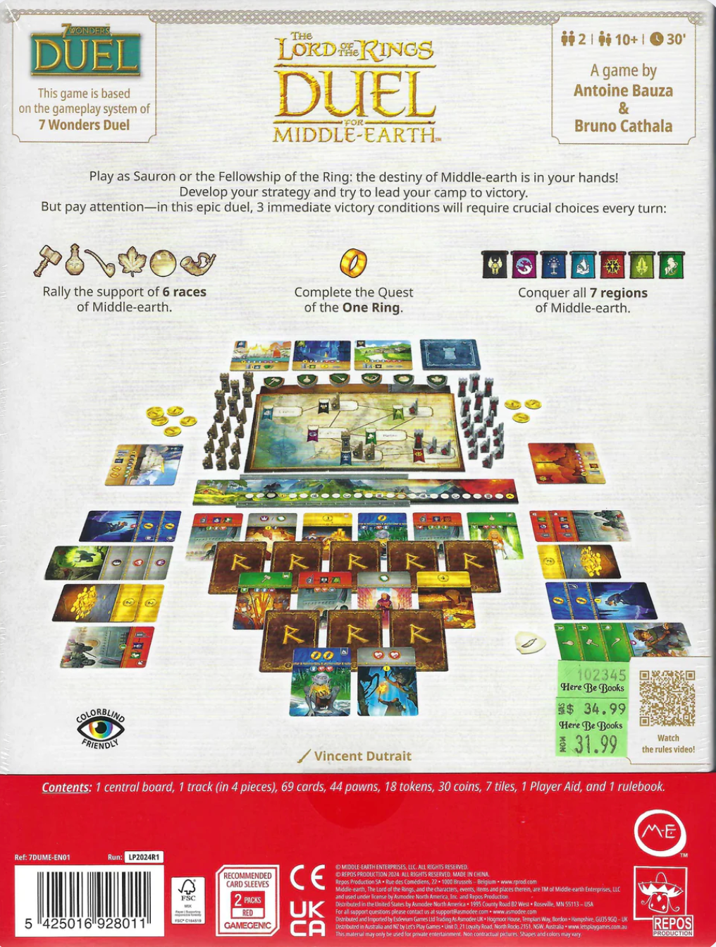 The Lord of the Rings: Duel for Middle-Earth is a spin-off of 7 Wonders: Duel, one player playing the evil forces of Sauron and another the free people of middle earth